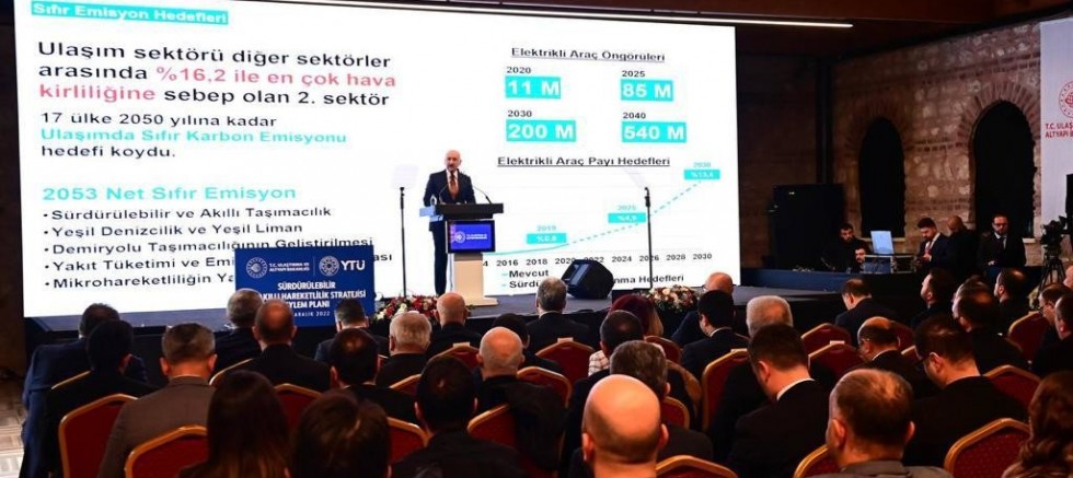 Bu gayeye ulaşmak üzere ulaşımdaki odak alanlarına baktıklarında “karbonsuzlaşma”, “elektrifikasyon”, “emniyet”, “dijitalleşme” ve “erişilebilirlik” kavramlarının öne çıktığına dikkati çeken Karaismailoğlu, Avrupa Komisyonu’nun Aralık 2019’da Avrupa Yeşil Mutabakatı’nı duyurduğunu anımsattı. Karaismailoğlu, “Bu mutabakat temel olarak 2030’a kadar Avrupa kıtasında ulaşım odaklı karbon salınımını yüzde 50 azaltmayı, 2050 yılına gelindiğinde ise sıfır karbon salınımı hedefine ulaşmayı amaçlamaktadır. Türkiye olarak, küresel ekonomideki güç dengelerini etkileyecek bu ve benzeri uygulamaları her zaman yakından takip etmekteyiz. Bu nedenle 'Sürdürülebilir ve Akıllı Hareketlilik Stratejisi ve Eylem Planı’mızda; sürdürülebilir ve akıllı taşımacılığın, yeşil denizcilik ve yeşil liman uygulamalarının, demiryolu taşımacılığının geliştirilmesi ile yakıt tüketiminin ve emisyonların azaltılması ve mikro hareketlilik araçlarının kullanımının yaygınlaştırılması hedeflerine yer verdik. Ayrıca; ülkemizin Paris Antlaşması’na taraf olması ile birlikte ‘2053 Net Sıfır Emisyon Hedefi’ ve ‘Yeşil Kalkınması Politikası’ doğrultusunda kısa, orta ve uzun vadeli stratejik hedef ve eylemlerin belirlenmesi için de çalışmalara başlanılmıştır. Bunun yanı sıra 2053 yılı için hedeflediğimiz sıfır emisyon doğrultusunda ulaşım odaklı sera gazı emisyonlarını sıfıra indirmeye yönelik somut adımlar da atıyoruz” değerlendirmesinde bulundu.