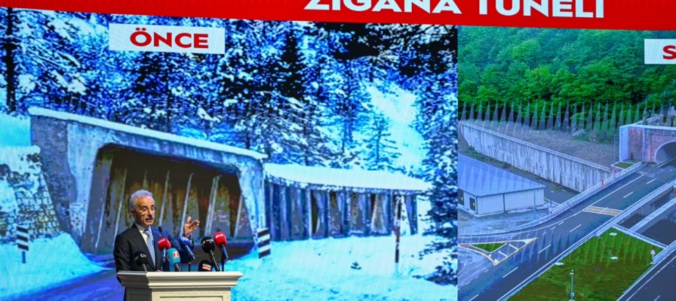 Avrupa’nın en uzun çift tüplü karayolu tüneli Zigana’yı hayata geçirdiklerini belirten Bakan Uraloğlu, “Sayın Cumhurbaşkanımız diyor ya, ‘nereden nereye…’ 14 buçuk kilometre, bir insan yürürse yaklaşık 4 saatte yürünecek bir güzergahtan bahsediyoruz. Dakikalar içerisinde oradan geçebiliyoruz. Bakın öncesini bilenler hatırlar.” dedi.